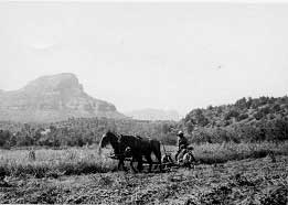 Sedona and the Verde Valley served as a significant agricultural hub early on. James Homestead on Oak Creek – 1879 (where Copper Cliffs is today)Initially agriculture was used for home consumption, or a limited seasonal market in Flagstaff or the mining area of Jerome. Fruit growing-particularly apples and peaches-played a significant part in the early Sedona economy and thus an important historic theme.